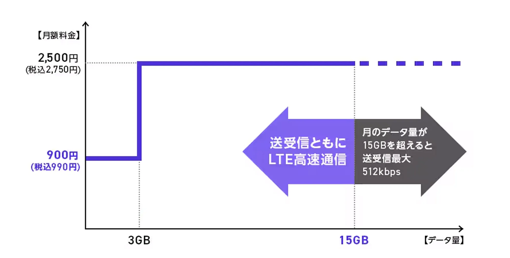 15GB以降は通信速度が送受信最大512kbpsとなります。