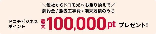 ・特典進呈期間中に「ドコモ光」を解約となった場合、解約月の1カ月後の月からドコモビジネスポイントの付与は終了となります。
